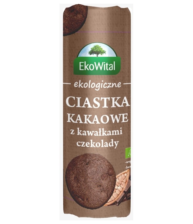 Składniki: Mąka PSZENNA*, cukier trzcinowy*, olej słonecznikowy*, kawałki czekolady* (min. 45% kakao) 12% (cukier trzcinowy*, masa kakaowa*, tłuszcz kakaowy*, emulgator: lecytyna słonecznikowa), kakao w proszku* 5,3 %, substancja spulchniająca: węglan amonu, węglan sodu; sól. *składniki pochodzące z kontrolowanych upraw ekologicznych.