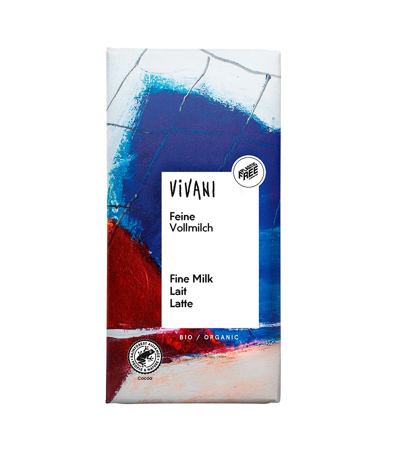 cukier trzcinowy nierafinowany*, tłuszcz kakaowy*, MLEKO pełne w proszku*, miazga kakaowa*, ŚMIETANA w proszku*, odtłuszczone MLEKO w proszku*, ekstrakt z wanilii Bourbon*. (*certyfikowany składnik ekologiczny). Masa kakaowa minimum 33 %, masa mleczna minimum 26 %.