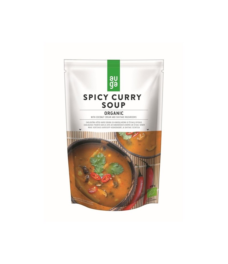 Pikantna zupa z ekologicznych składników z grzybami i kremem kokosowym.