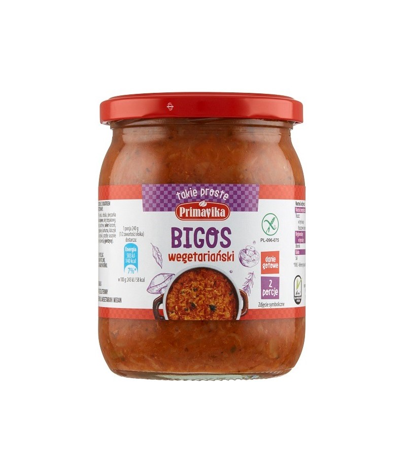 Bigos roślinny bezglutenowy marki Primavika fantastycznie sprawdzi się jako samodzielne danie, ale świetnie smakuje też z chrupiącym pieczywem. Wegetariańska kapusta to również pyszny dodatek do pieczonych ziemniaczków, zwłaszcza do tych okraszonych podsmażonym wędzonym tofu.