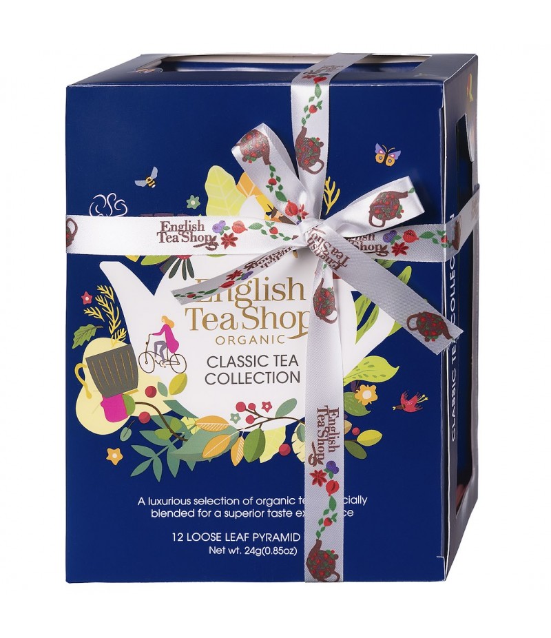 Zestaw prezentowy w eleganckim kartoniku. Zestaw biodegradowalny, pozbawiony plastiku. Zawiera 12 osobno pakowanych piramidek z ekologiczną herbatą.
