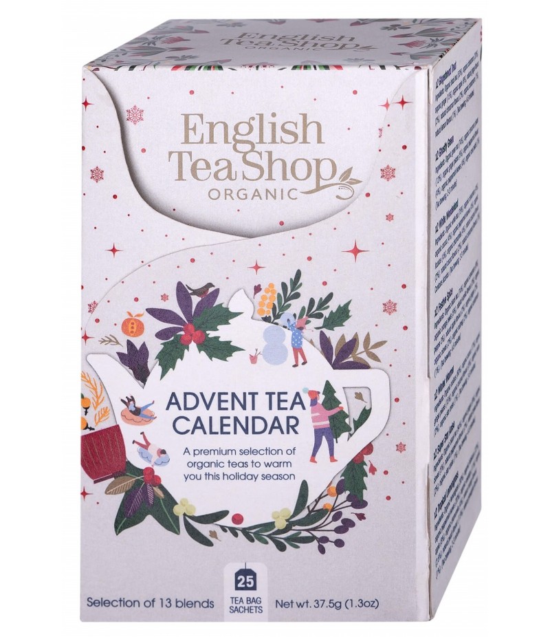 Kalendarz adwentowy - 25 saszetek z ekologicznymi herbatami i herbatkami w 13 różnych smakach.