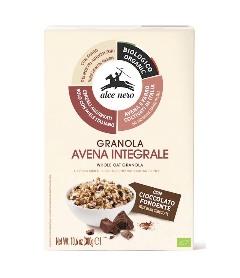 płatki OWSIANE pełnoziarniste* 39 %, ekspandowana PSZENICA PŁASKURKA* 22 %, miód wielokwiatowy* 21 %, ekstrudowany ryż* (mąka ryżowa*), gorzka czekolada* 8 % (cukier trzcinowy*, pasta kakaowa*, tłuszcz kakaowy*, ekstrakt z wanilii*), przeciwutleniacz: ekstrakt bogaty w tokoferole*. (*certyfikowany składnik ekologiczny)