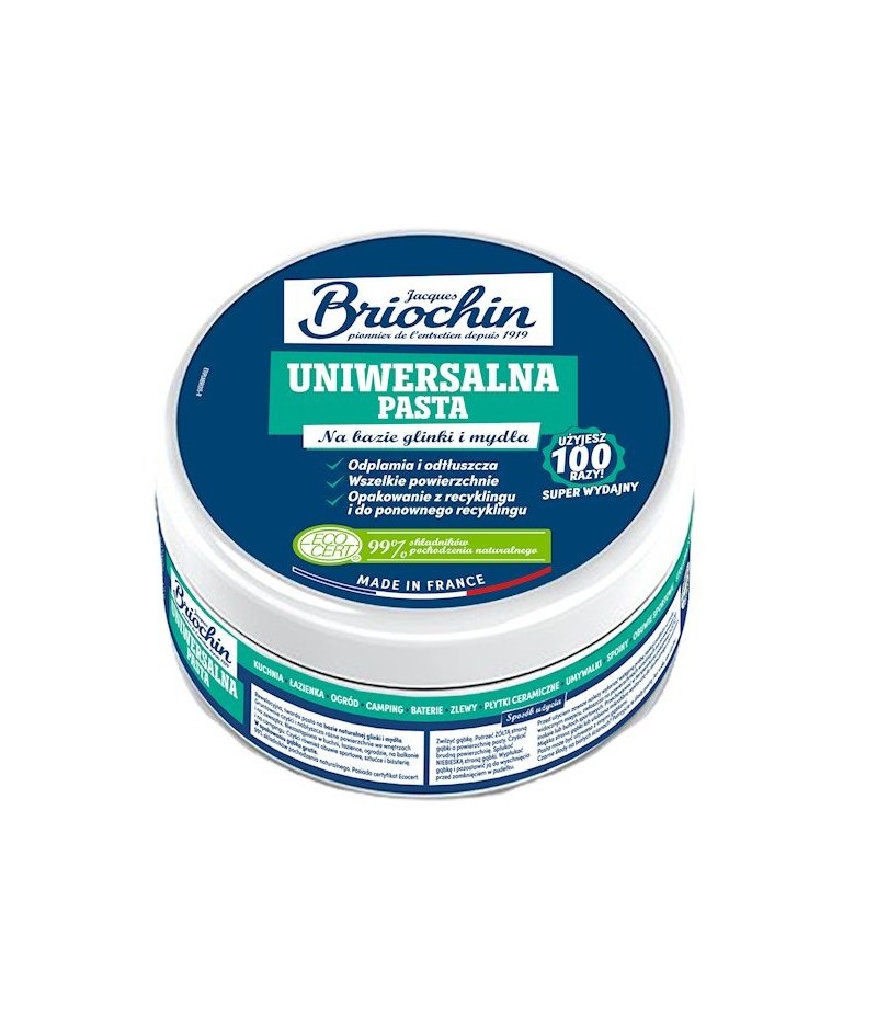 Dzięki swojej unikalnej formule opartej na glince i mydle, pasta jest bardzo wszechstronna: skutecznie odplamia i odtłuszcza, radząc sobie z trudnymi zabrudzeniami w kuchni, łazience, na balkonie czy w ogrodzie. To niezastąpiony pomocnik w walce z tłuszczem, plamami czy brudem na wielu powierzchniach, takich jak obuwie sportowe, sztućce, biżuteria czy ściany. Pasta Briochin doskonale sprawdzi się również w warunkach campingowych, gdzie liczy się mobilność i efektywność.