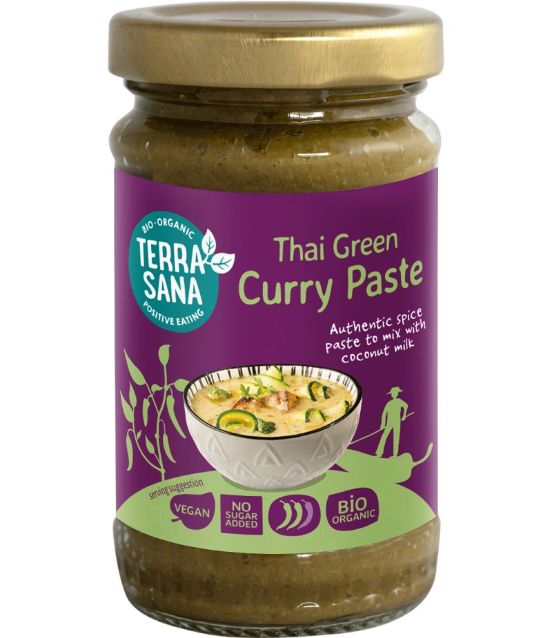 papryka chili zielona* (45 %), trawa cytrynowa*, szalotka*, czosnek*, sól, nasiona kolendry*, galangal*, skórka z limonki kaffir*, kminek*, regulator kwasowości: kwas cytrynowy (*certyfikowany składnik ekologiczny)