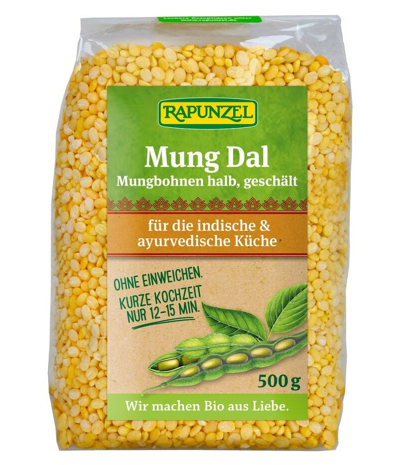Mung dal to obrane połówki ziaren fasoli mung, gotowane bez wstępnego moczenia w zaledwie 12 do 15 minut.