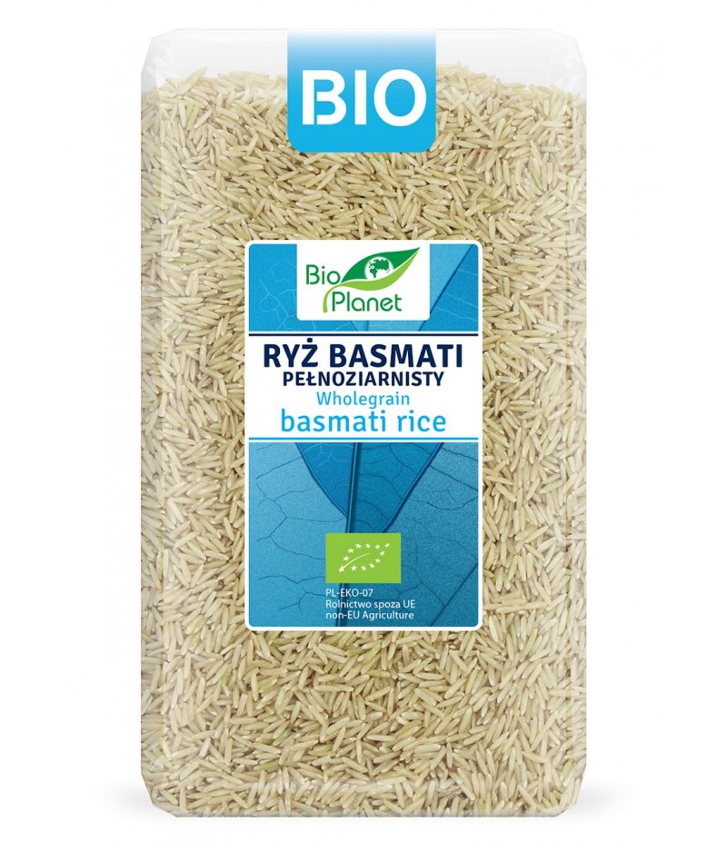 Ekologiczny ryż Basmati pełnoziarnisty charakteryzuje się subtelnym orzechowym smakiem i niepowtarzalnym aromatem. Stanowi najszlachetniejszą odmianę ryżu na świecie. Doskonały jako dodatek do mięs, sałatek, dań egzotycznych i deserów. Ryż Basmati pełnoziarnisty zachowuje wszystkie cenne składniki znajdujące się w łusce, dzięki czemu jest bardziej wartościowy niż ziarno obłuszczone.