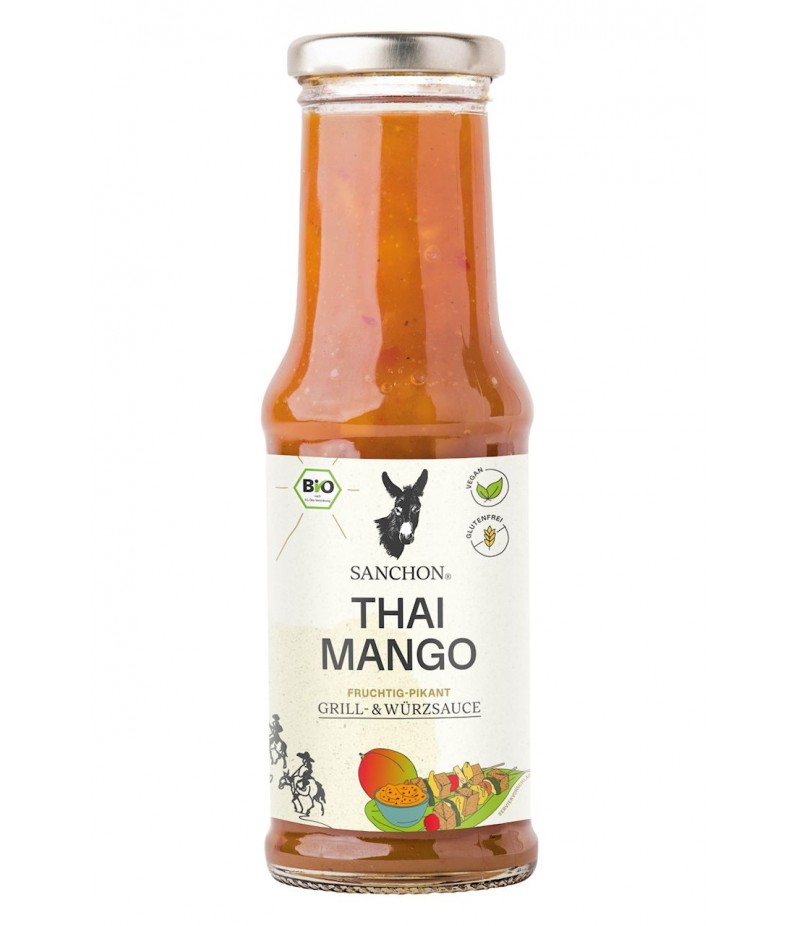 mango* 37 %, surowy cukier trzcinowy*, woda, ocet z białego wina*, skrobia z tapioki*, papryka*, czosnek*, liście limonki kaffir*, chili*, kurkuma*, sól morska, koncentrat soku z cytryny*, olej słonecznikowy*, substancje zagęszczające: guma guar*, mączka chleba świętojańskiego*. (*certyfikowany składnik ekologiczny)