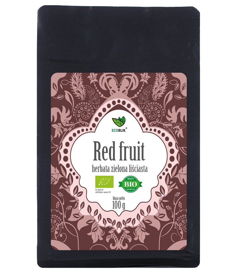 Herbata zielona RED FRUIT EKO charakteryzuje się delikatnym smakiem zielonej herbaty, z mocnym owocowym akcentem smakowym i aromatem.